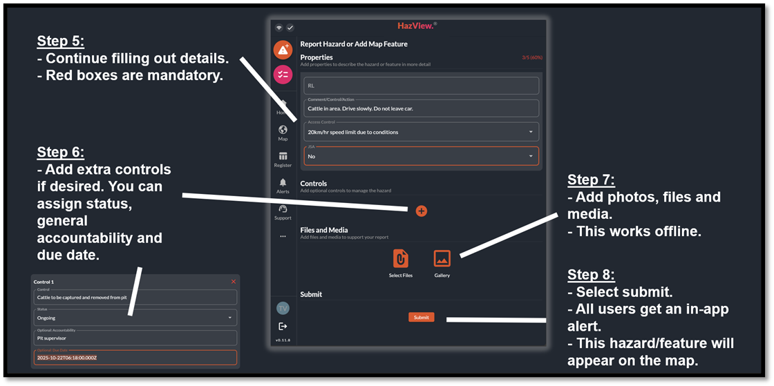 Figure 18 – Adding files and media to a hazard or featureStep 7. Submit