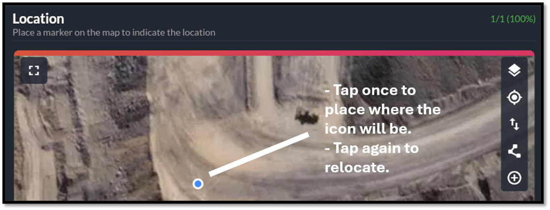 Figure 15 – Tap once on the map to place the iconStep 4. Add an area if required