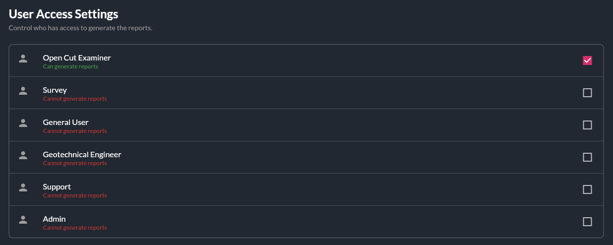 If a user does not have the correct Role, they are only able to see the Report Generation tab.