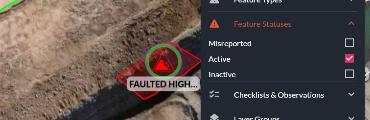 Select the Feature Statuses to show previously resolved or misreported hazards.