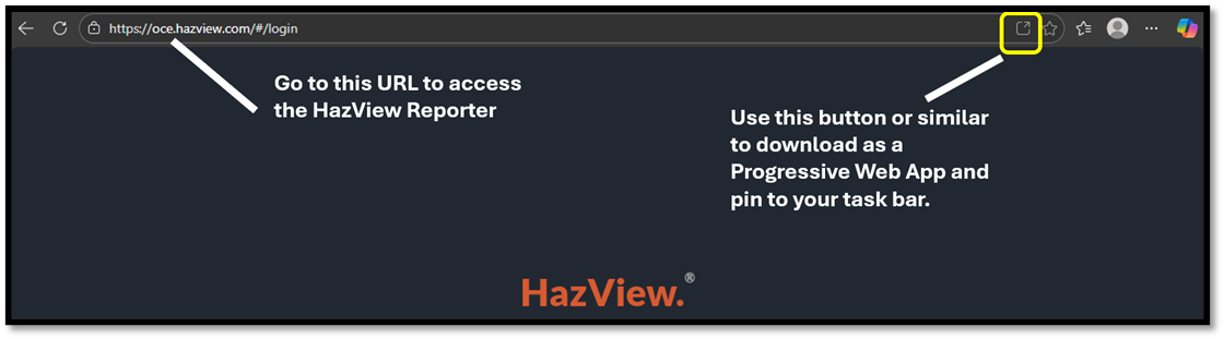 There is not a dedicated app for mobiles. You can access the HazView reporter through the URL (Type https://oce.hazview.com into the address bar of your internet browser). Mobiles will allow you to save this as a bookmark and add it to your ...