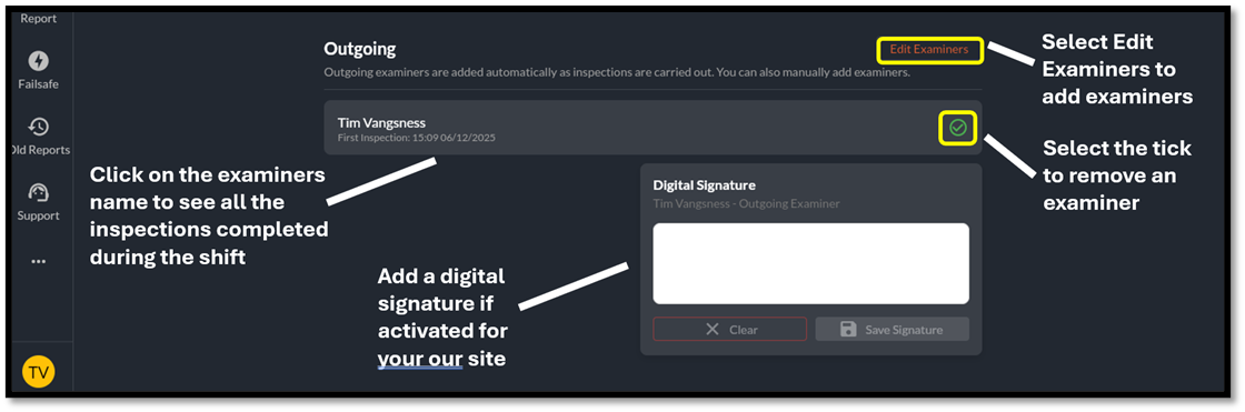 Any OCE that has completed an inspection during the shift