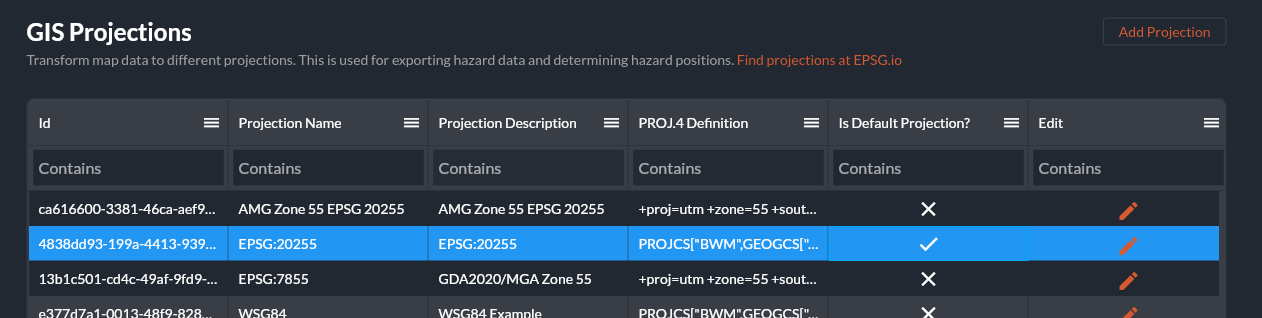 Adminstrators have the ability to add GIS projections for their users use. Ensure that the correct projection is used, and the users understand what projection they should be using. It is the users responsibility to control this data and ensure it is in the correct projection.