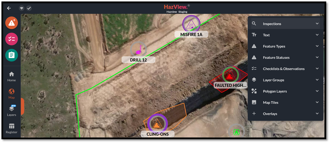 The HazView map is the main interface for viewing hazards, completing inspections, placing new hazards and managing site information. The map displays your site imagery, hazards, features, inspections and any additional layers your site has added. ...