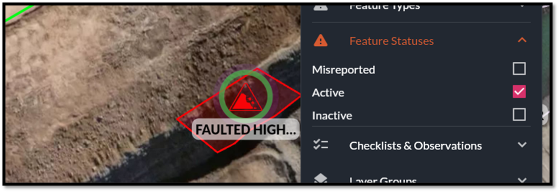 Select the layers button and expand the Feature Statuses to show previously resolved or misreported hazards. These options may vary based on your sites configuration.