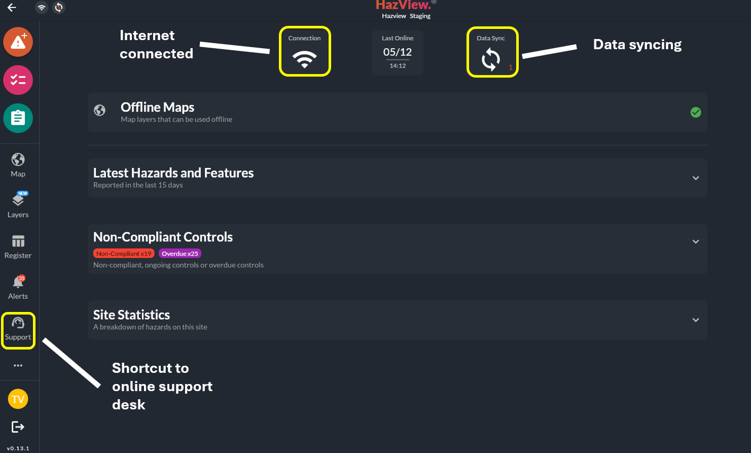 If HazView does not behave as expected, help resources and troubleshooting steps can be accessed at https://support.hazview.com.
